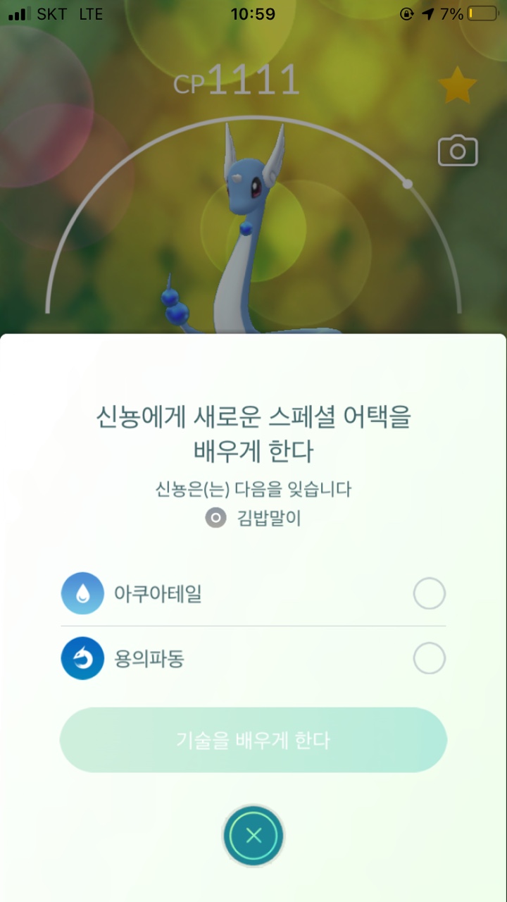 - 스페셜 기술 : 김밥말이(노말), 아쿠아테일(물), 용의숨결(드래곤)