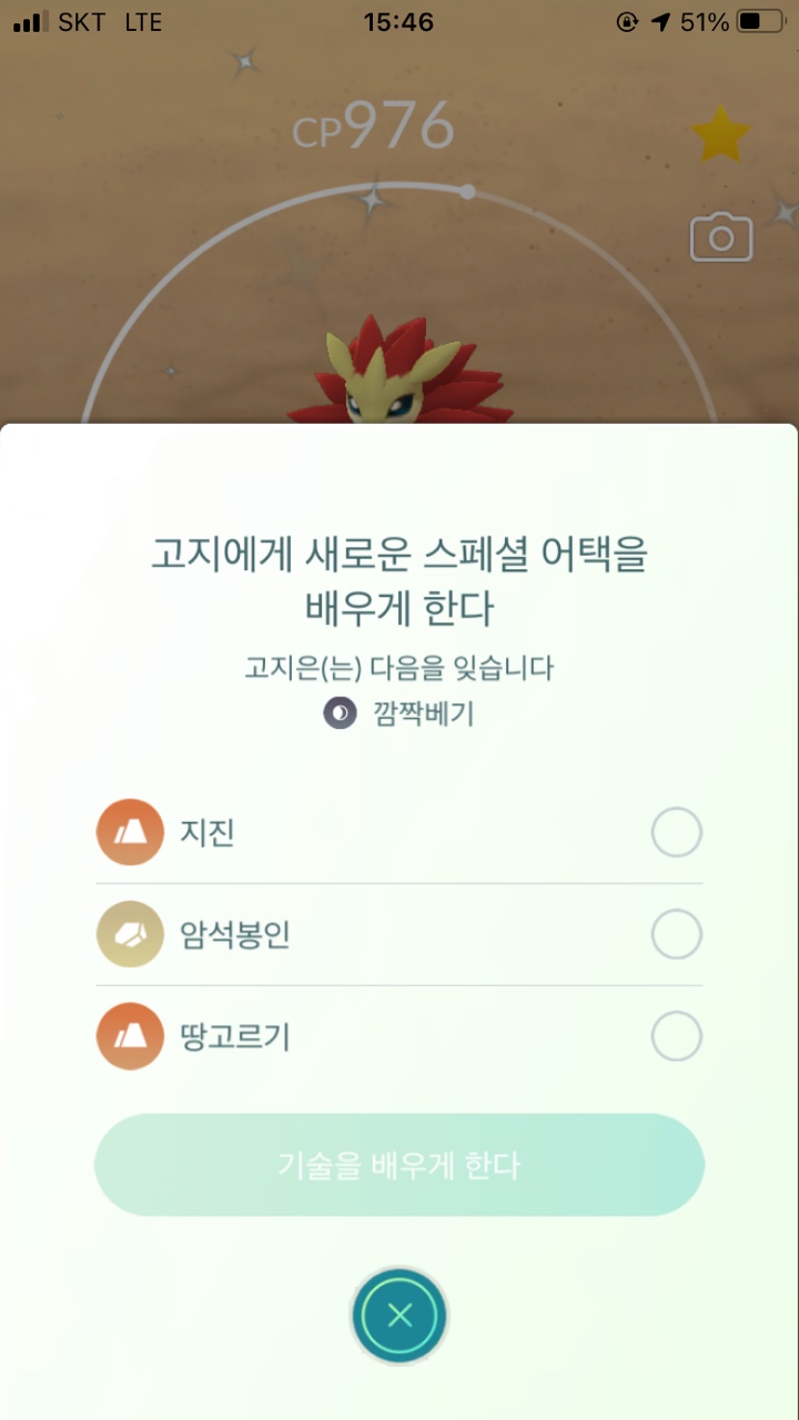 - 스페셜 스킬 : 땅고르기(땅), 지진(땅), 암석봉인(바위), 깜짝베기(악)