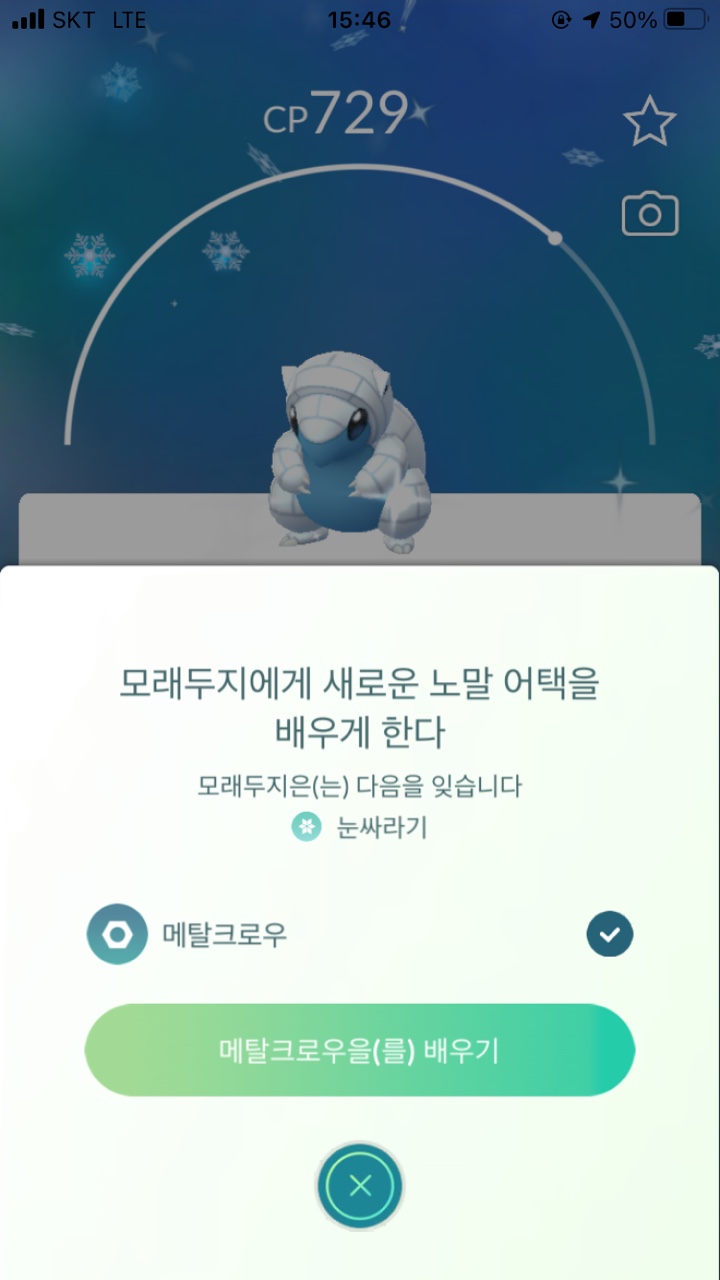 - 노말 스킬 : 눈싸라기(눈), 메탈크로우(강철)