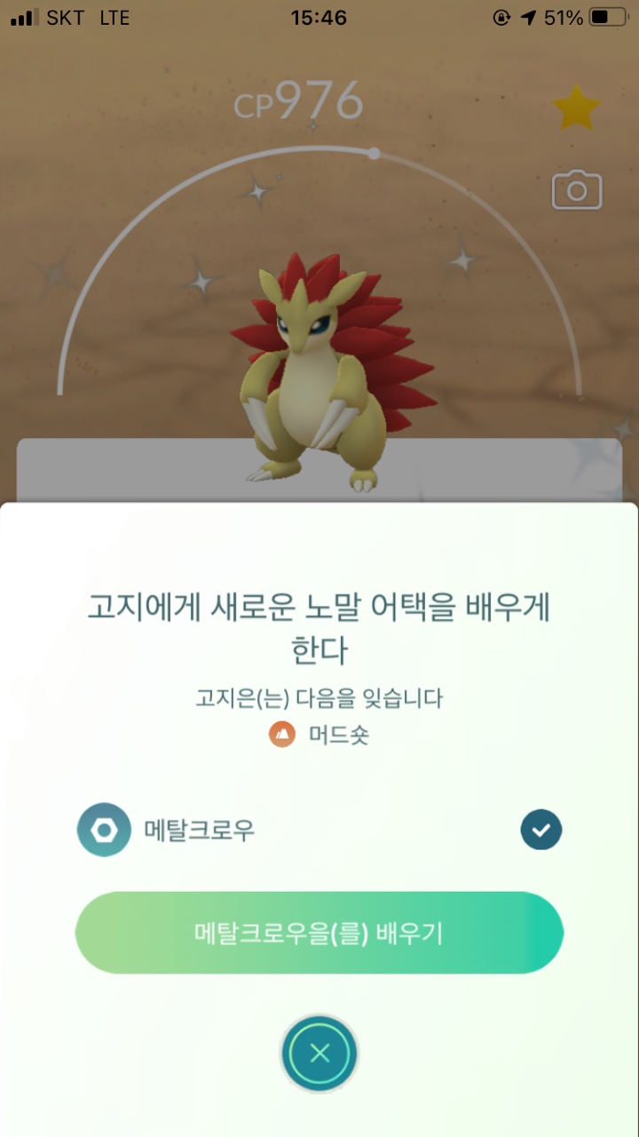 - 노말 스킬 : 머드숏(땅), 메탈크로우(강철)