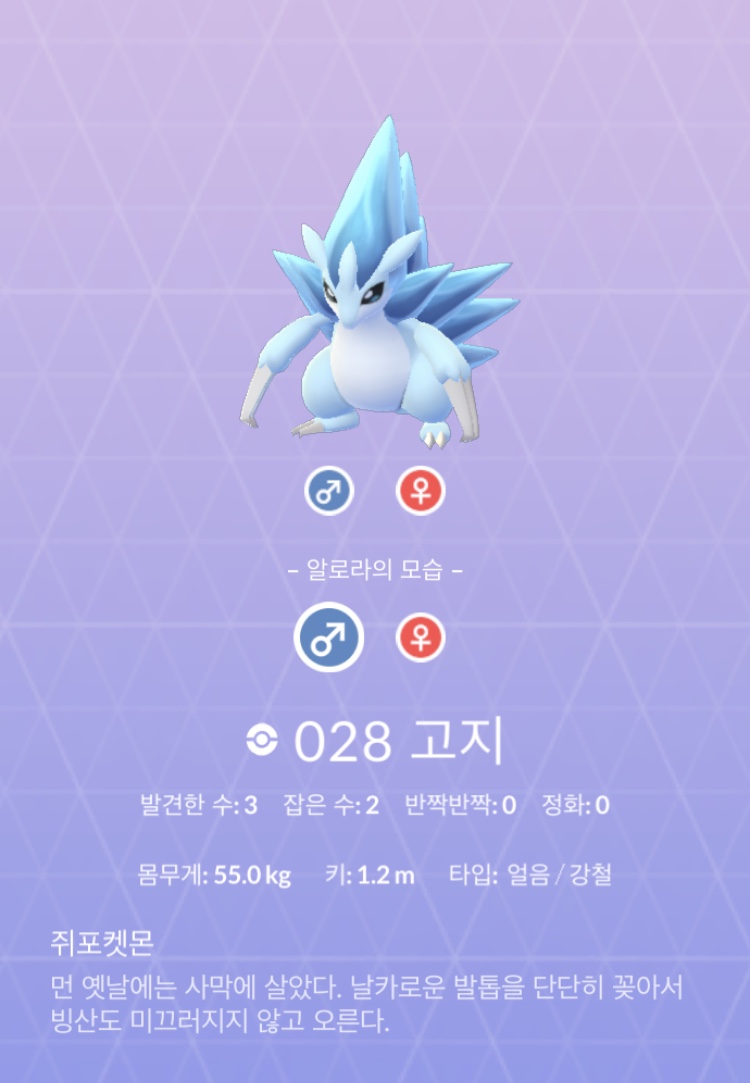 알로라도 진화는 같고 특성이 다르네요.