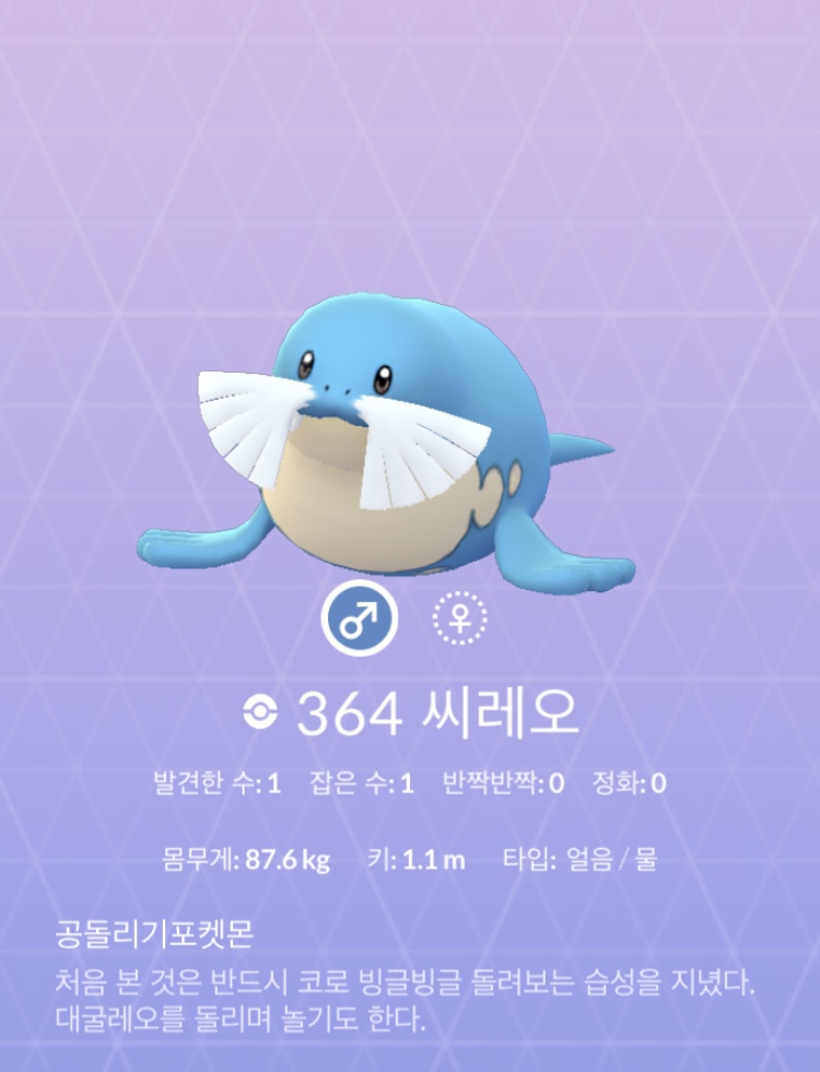 이번 포켓몬은 대굴레오예요. 흠..바다표범 같죠?!