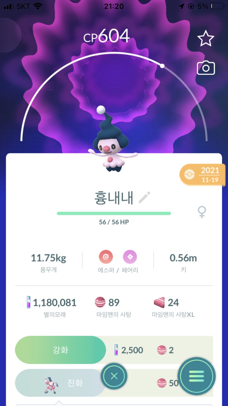 | [포켓몬고 진화] 색이다른 해골몽 - 미라몽 - 야느와르몽 (0) | 2021.12.08 |