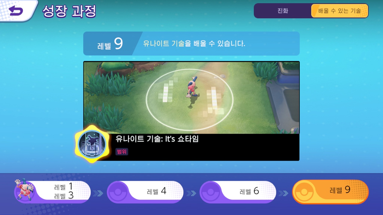 <레벨9> : 유나이트 기술을 배울 수 있습니다.