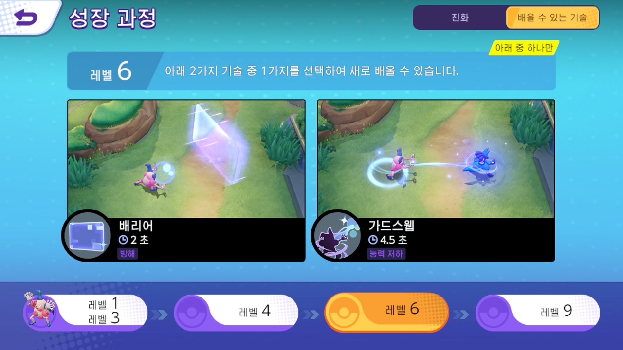 <레벨6> : 아래 2가지 기술 중 1가지를 선택하여 새로 배울 수 있습니다.