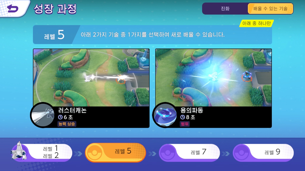 <레벨5>: 아래 2가지 기술 중 1가지를 선택하여 새로 배울 수 있습니다.
