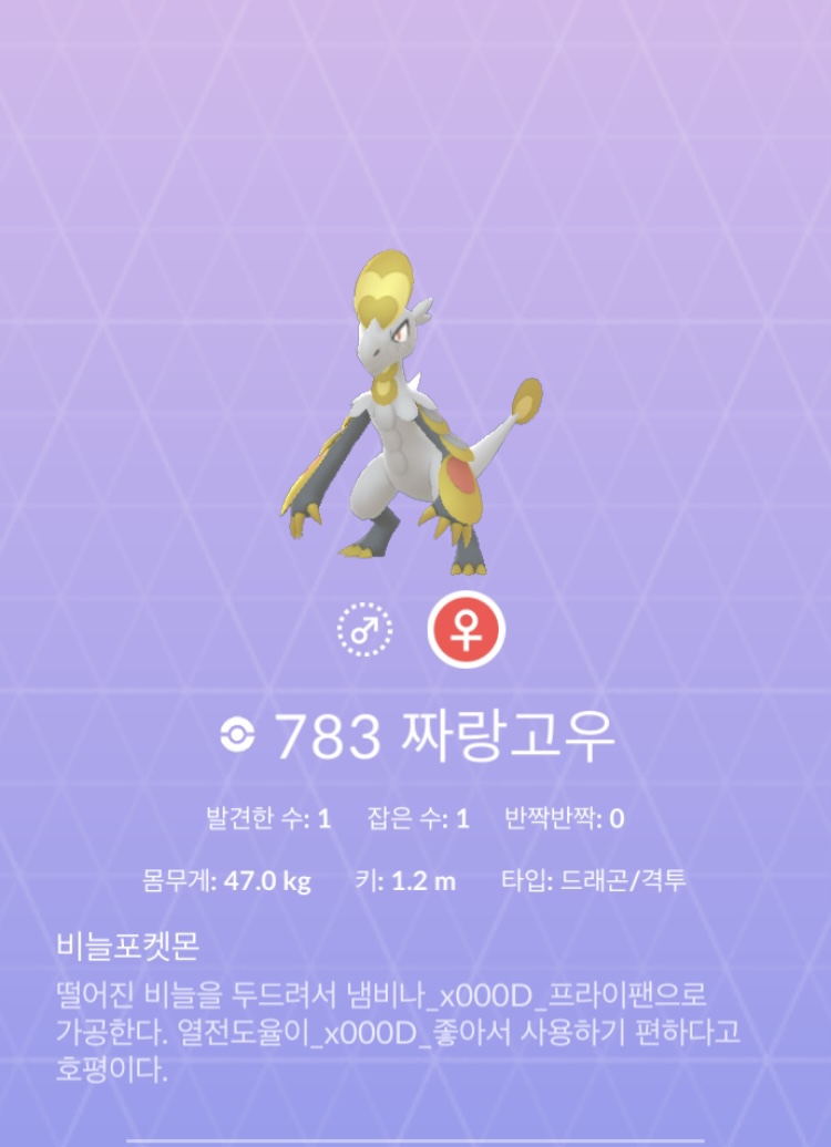 알로라 포켓몬 중에서는 제일 얻기 힘들 포켓몬인거 같아요.