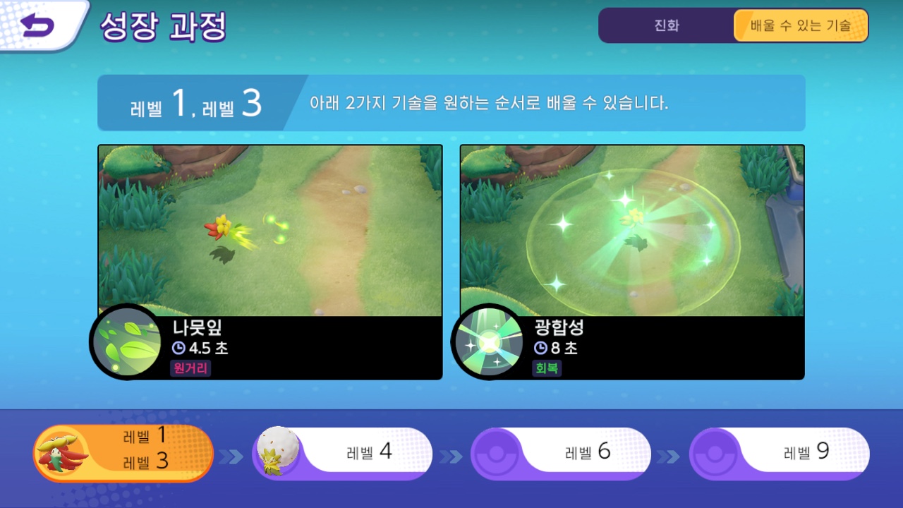 <레벨4>: 아래 2가지 기술 중 1가지를 선택하여 새로 배울 수 있습니다.