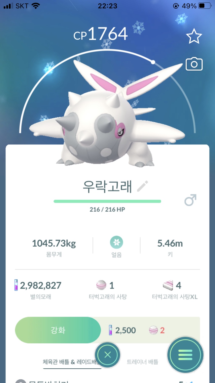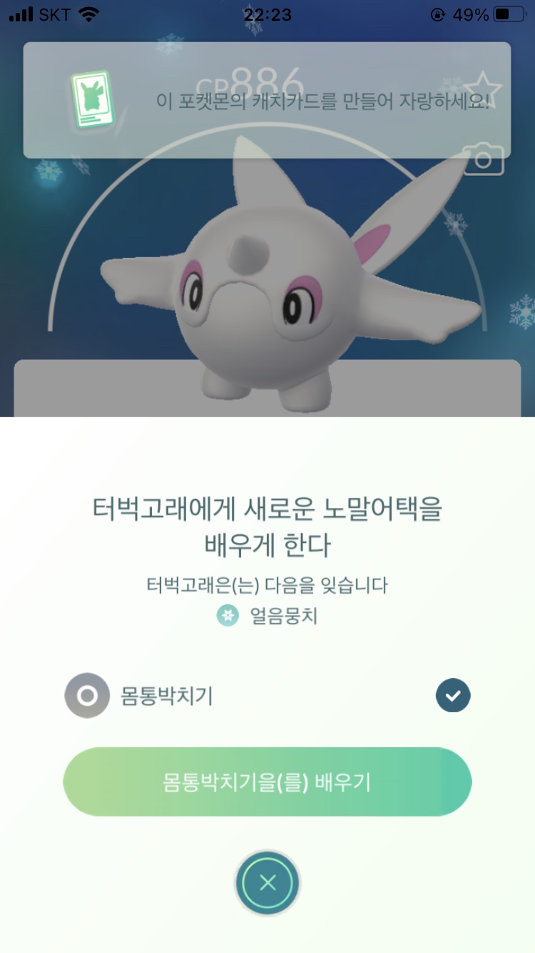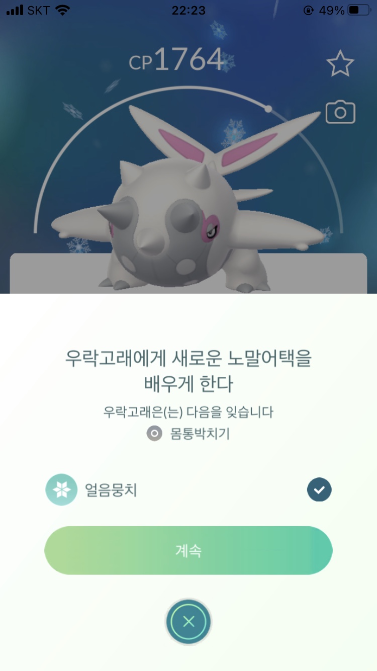 - 노말 기술 : 몸통박치기(노말), 얼음뭉치(얼음)