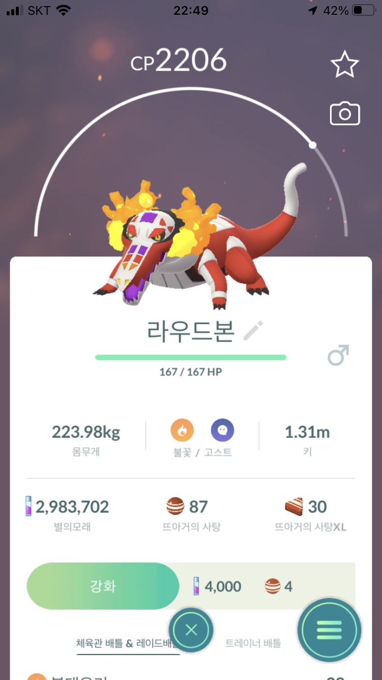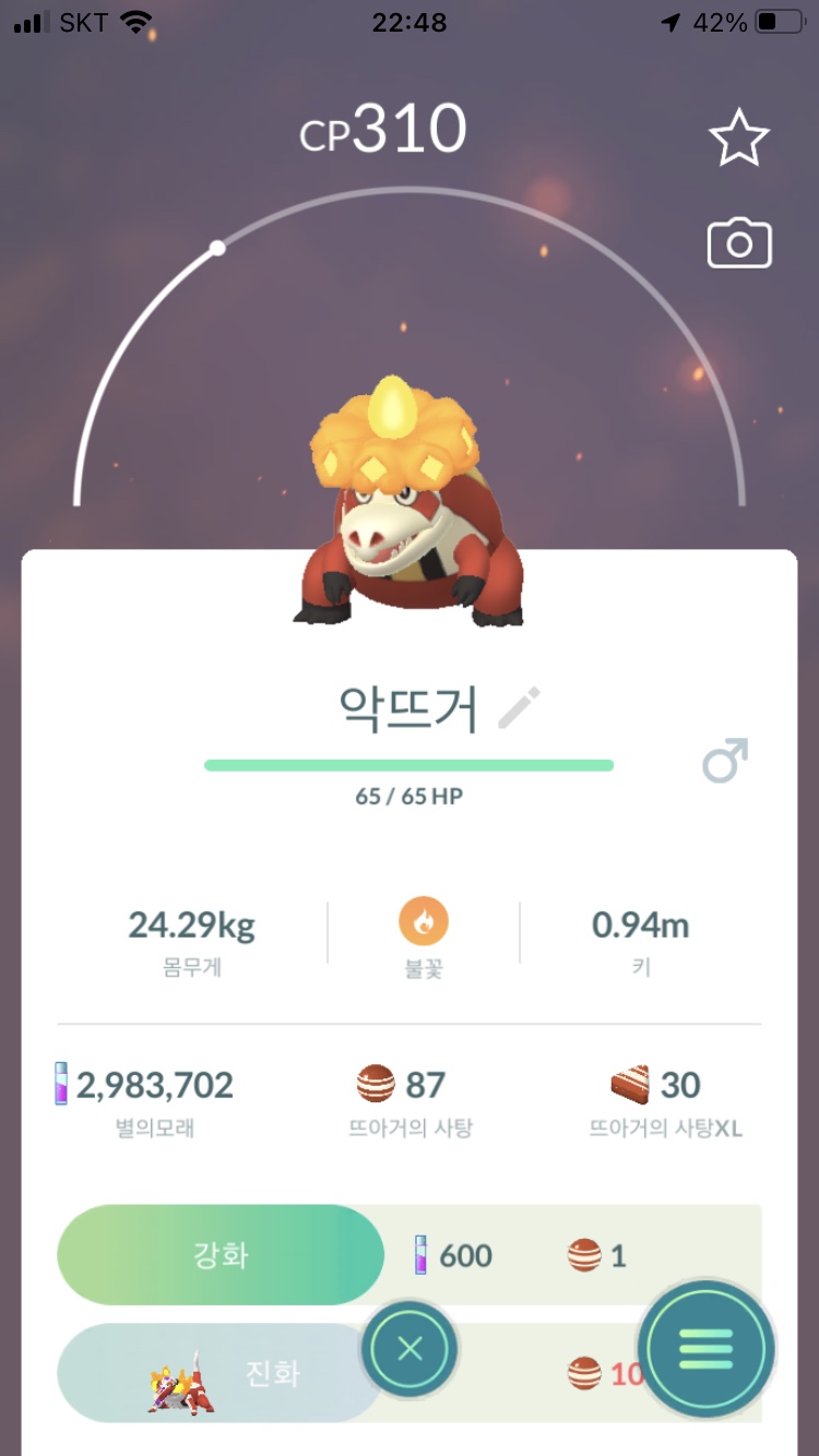 - 특성 : 불꽃 에너지와 남아도는 생명력이 섞여서 머리 위에 알 모양의 불동이가 생겨났다.