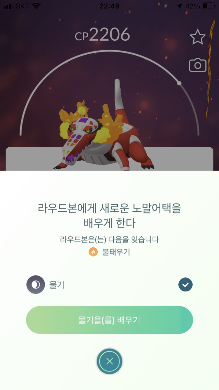 - 노말 기술 : 물기(악), 불태우기(불꽃)