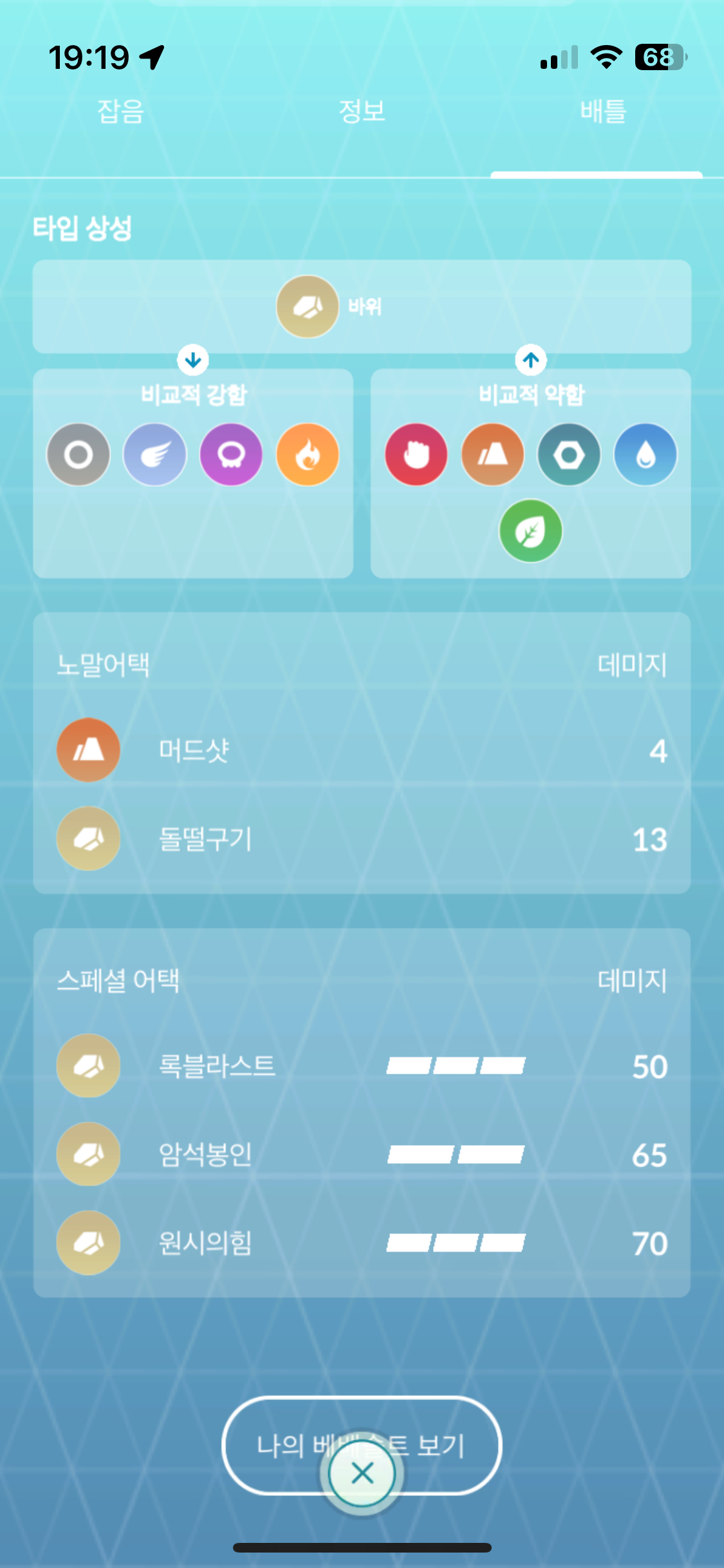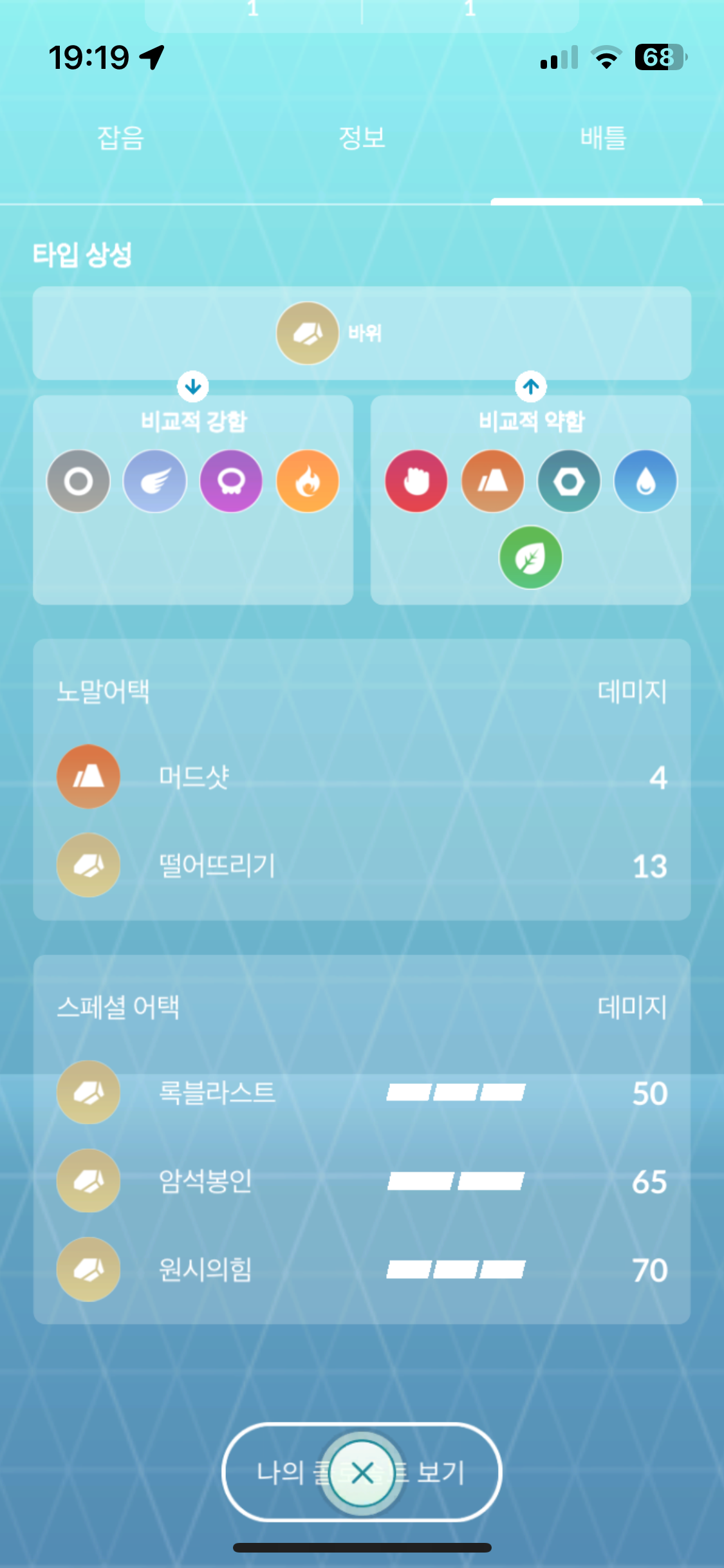 - 비교적 약함 : 격투, 땅, 강철, 물, 풀