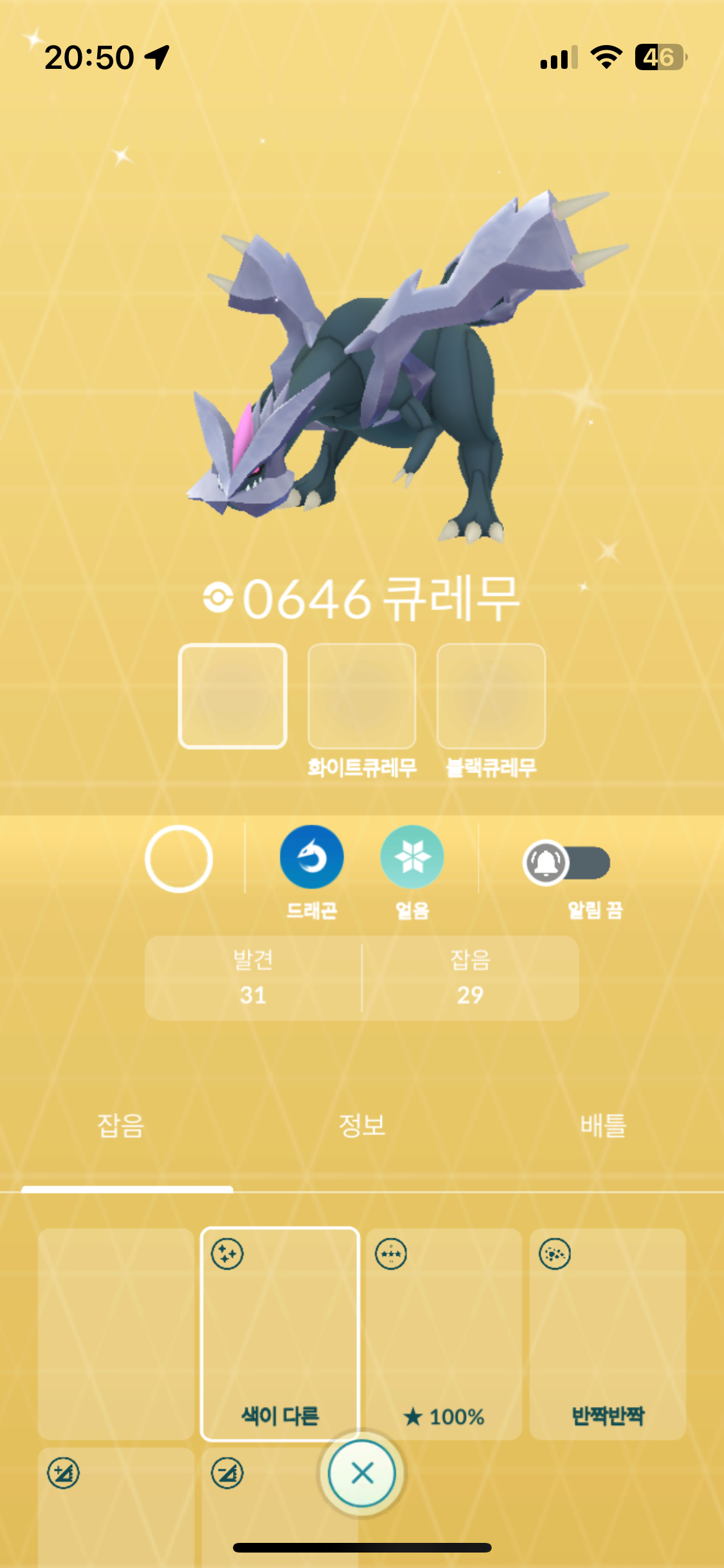 - 색이다른 레시라무, 제크로무, 큐레무 등장확률 증가