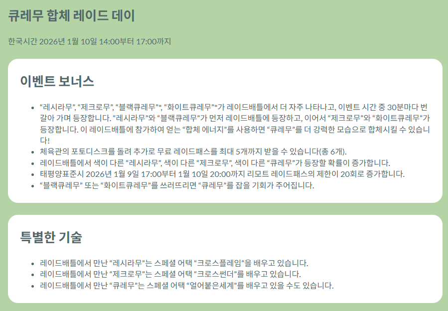 사실 25년도에 한번 이벤트가 있었는데...저는 시간이 없어서 많이 못했어요...그래서 화이트큐레무 뿐이었는데...