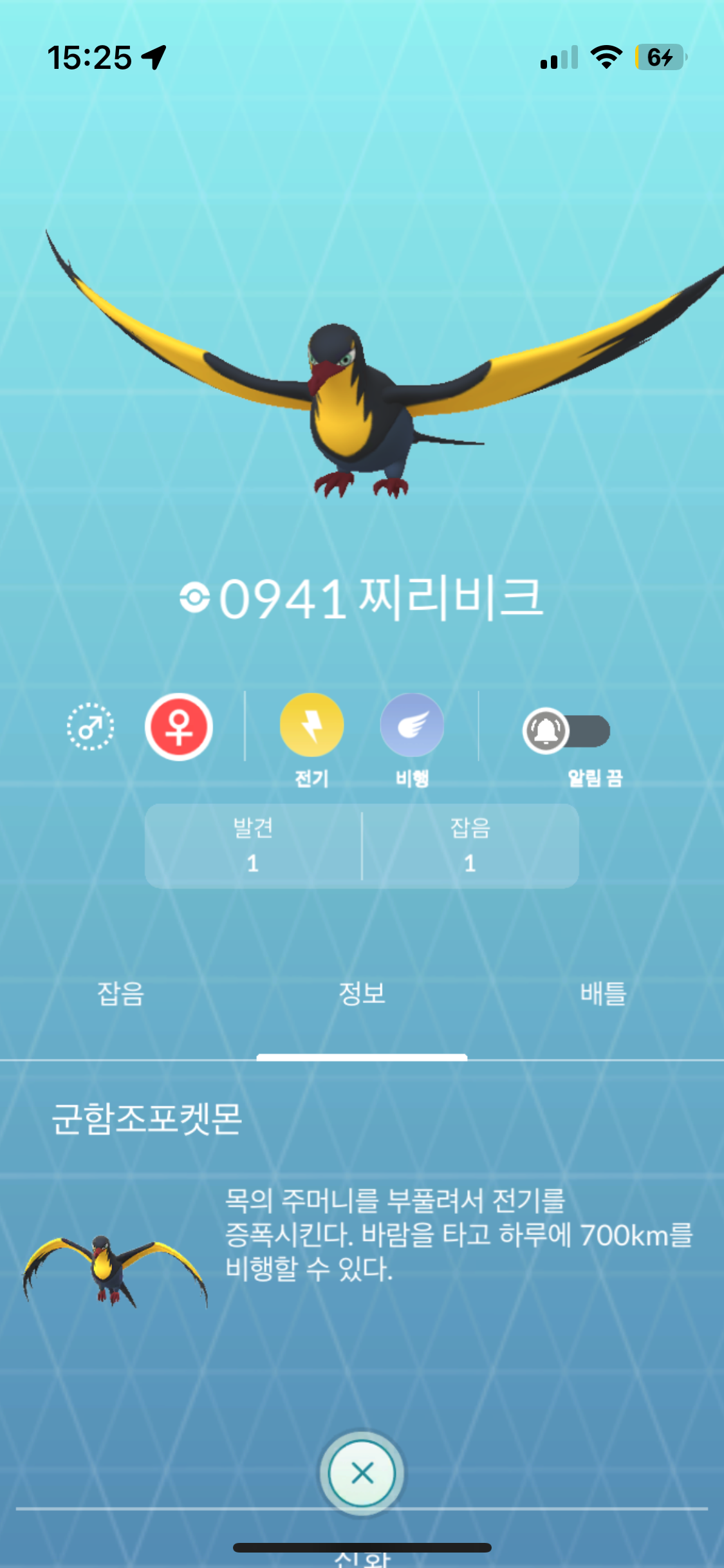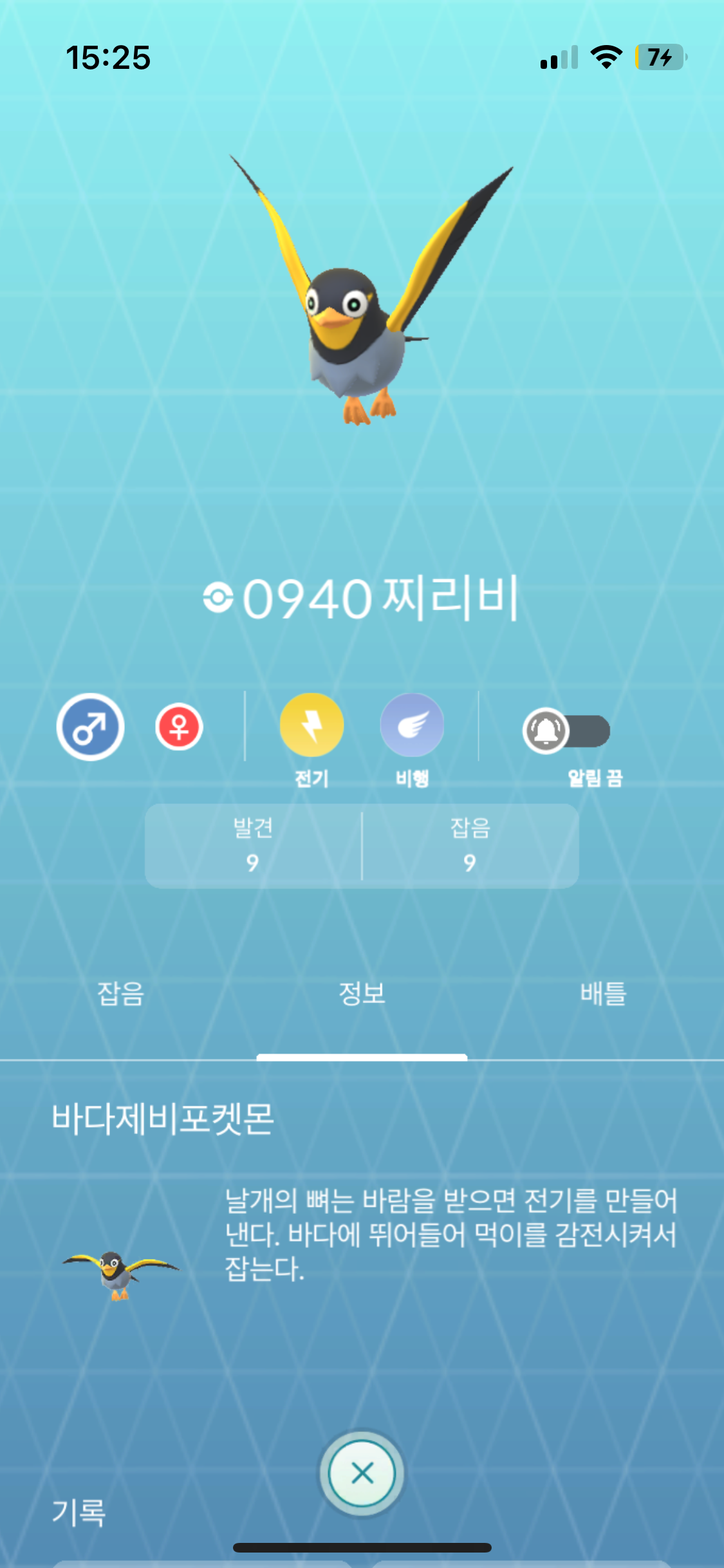 이번 포켓몬은 제비인 것 같습니다. 바다제비입니다.