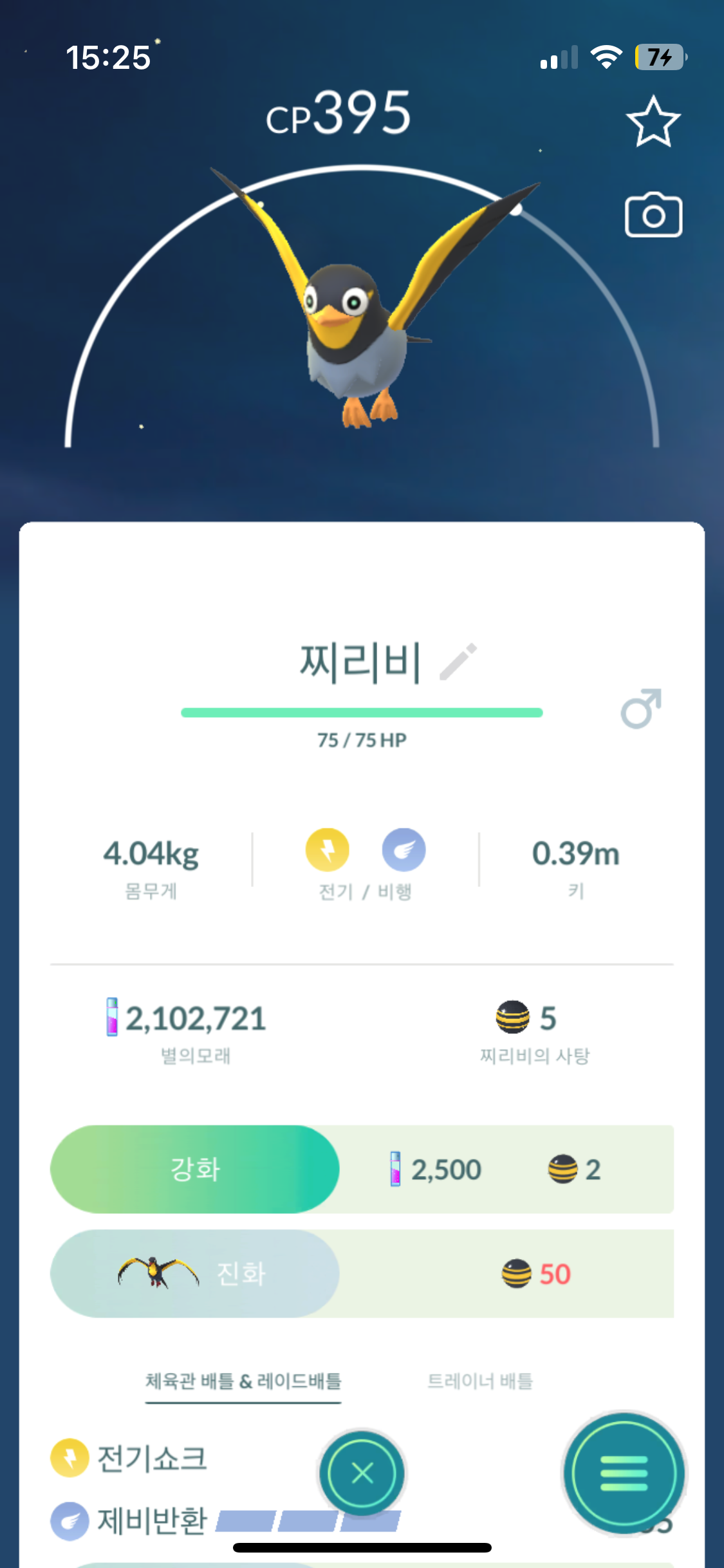 - 노말 기술 : 에어슬래시, 전기쇼크