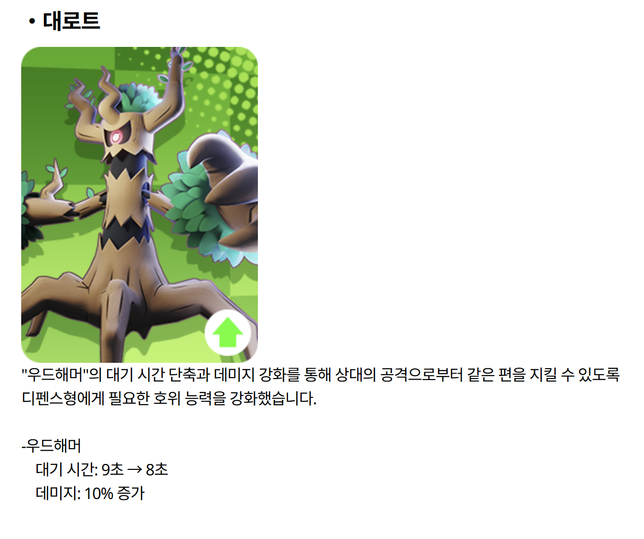 다른 디펜스형 포켓몬과 밸런스가 맞도록 조정했습니다.