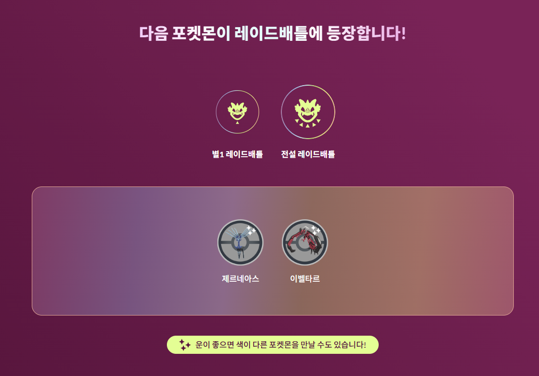 | [포켓몬고] 다이맥스 칠색조 맥스배틀 위켄드 정보 (0) | 2026.01.20 |
