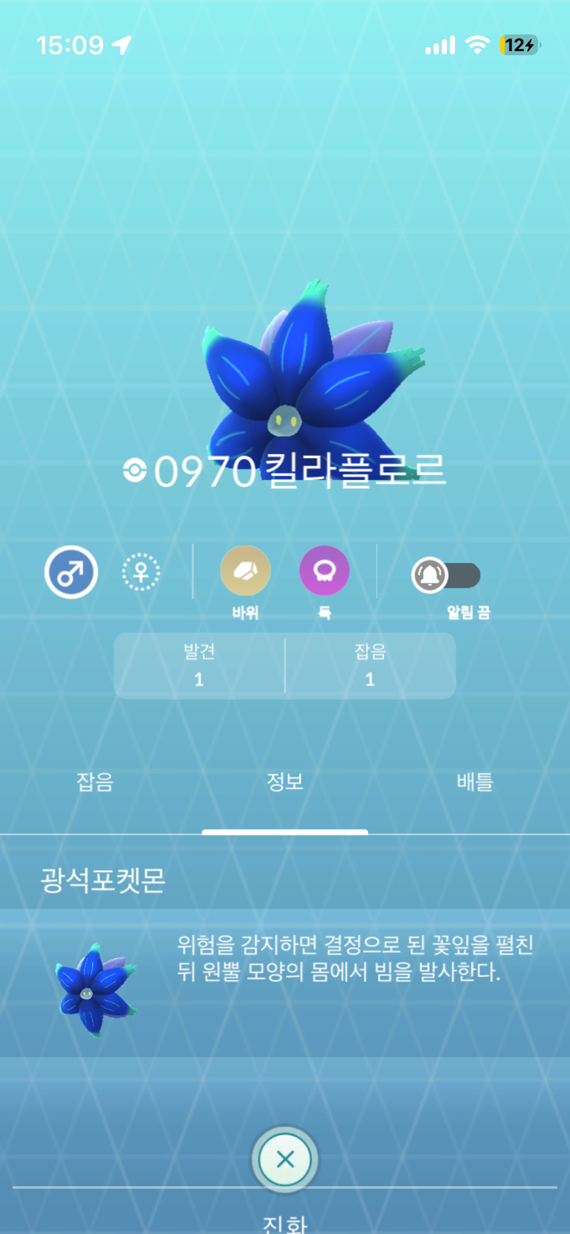이번 포켓몬은 동굴 속의 독꽃? 같은데...광석포켓몬입니다.