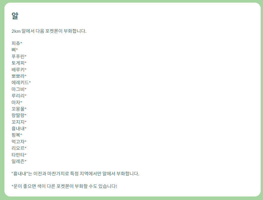 *운이 좋으면 색이 다른 포켓몬이 부화할 수도 있습니다!