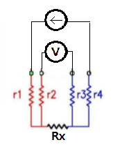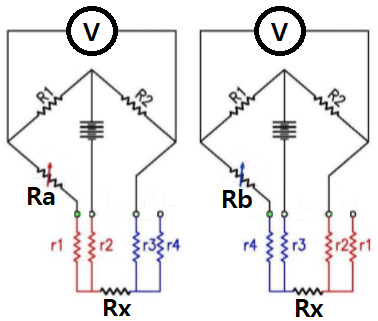 오른쪽 회로 : R1+Rb+r4+r3=R2+r2+Rx+r3, Rb = Rx+r2-r4